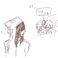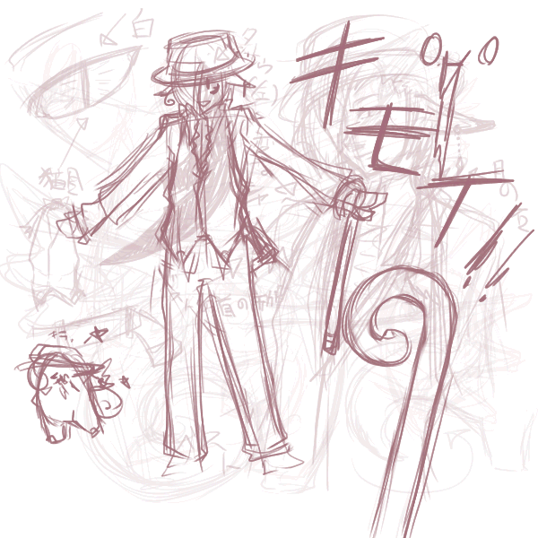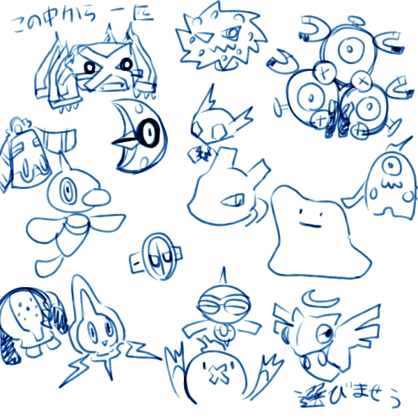 何か名簿見てたら元祖軍人さん(であろうと思われる)とか魔法学校さん(と推測される)とかの方がいっぱいいたんで一瞬メタg……とも思ったんですが。どうも自分のイメージの中にあるメタモンの妙な存在感とか、あの「どんなに変身してもメタモンはメタモンでしかない」辺りとか、どうもそういうのが自分の擬人化やってる根元の所にある様な気がしてならないのでこの機会にそういう事考えつつ描いてみようと思います。