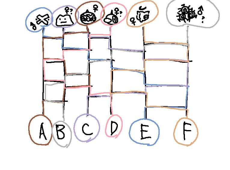 ▼まずは好きなキャラを6人挙げて、あみだくじなどでランダムに下のアルファベットに当てはめて下さい